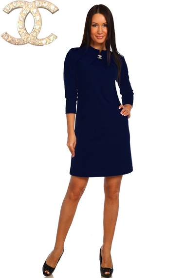 Фото товара 15505, темно-синее платье с длинным рукавом